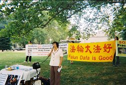 在这里还发生了一个小插曲。一些不明真相的中国人找到一位正在讲真相的学员,说道:“我是个医生,你在这里丢中国人的脸。”这位学员正好也是位医生,她回答到:“很多医生和你的看法正好不一样,医生的职责是救人不是杀人,是干这件事的人错了,还是揭露这件事的人做得不对?”