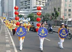 2006年8月19日,法轮功学员在印度尼西亚首都雅加达举行了盛大的游行活动,向人们展示法轮大法的祥和美好,并揭露中共对法轮功修炼者的残酷迫害。