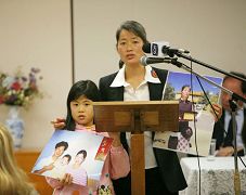 戴志珍母女专程从悉尼乘火车赶来参加报告会,她叙述了因为修炼法轮功被中共迫害致家破人亡的经历。她在发言的最后表示:“请读一下这份调查报告,我和我的女儿代表更多受迫害的妇女和儿童向公众呼吁,请采取行动,制止这场迫害。”