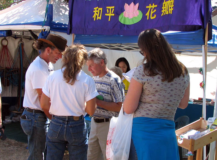 在四天多的活动中,络绎不绝的人群来到学员们的摊位了解法轮大法及其在中国所受的迫害,还有在中国大陆仍在发生的活体摘取法轮功学员器官的罪恶。前来询问的人们离开时几乎人人手中都拿着揭露中共迫害法轮功的真相资料。