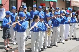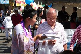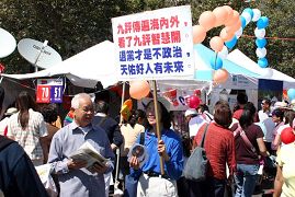 奥克兰中秋节会每年都有20万人次参加,游客川流不息。十几个人组成的小乐队的演奏吸引了民众的注意。学员说,人们在倾听演奏的时候,资料发的特快,有的还主动过来拿。有一对老夫妻在学员们休息的时候也不愿离开,等着听演奏。还有的人向学员们打出胜利的“V”字型手势。