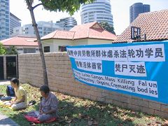 ![]() 新加坡法轮功学员在中使馆前和平抗议中共迫害法轮功 | ![]() 新加坡民众要了解真相,却遭到警察查问 |