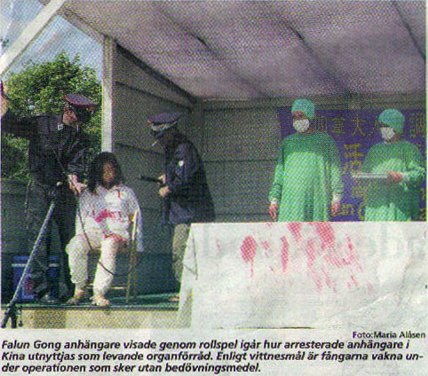 昨天在Borgholm广场举办了一个活摘器官演示,这是法轮功学员展示的一个反对盗取器官的演示。古斯塔夫说,法轮功学员在中国被迫害并被关押在集中营。