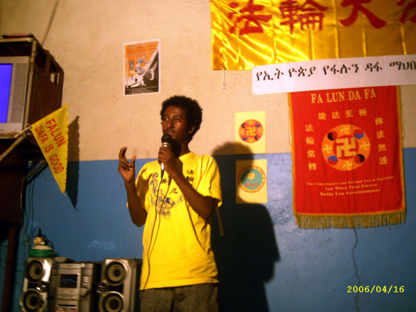 埃塞俄比亚的大法弟子在首都阿迪斯阿贝巴举行了庆祝仪式。有150多位不同年龄的人前来参加。他们来自不同地方,甚至有从120公里外赶来的。学员介绍了法轮功,展示了5套功法,并谈起了法轮功在中国大陆受到残酷迫害的真相。