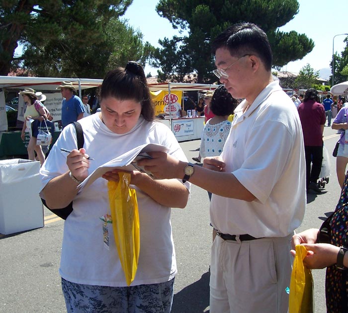 两天来,很多人表示已经听到过发生在中国的迫害,有的人去年来过法轮功学员的展位,今年又来了,听到中共对法轮功的迫害还在继续,表示无法理解。