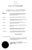 印第安纳州伊文斯维尔市褒奖令鉴于,法轮大法是基于中国古老文化的修炼,旨在提高身心健康和精神境界,包括动功、打坐以及根植于中华文化的教导; 鉴于,法轮大法倡导真、善、忍; 鉴于,法轮大法自1992年公开传出后,迄今已有上亿人修炼,遍及六十多个国家;鉴于,在印第安纳州的法轮大法修炼者证实修炼法轮大法能减轻压力、增进健康、提高精神境界; 鉴于,在中国无数的法轮大法修炼者因遵循该功法的教导而遭到迫害; 鉴于,伊文斯维尔市市民已参与到全球范围内为处于困境中的人们呼吁信仰自由和人权的和平请愿中来; 因此,我,伊文斯维尔市市长乔纳森·文泽菲尔(Jonathan Weinzapfel),在此宣布2006年7月26日为印第安纳州伊文斯维尔市“法轮大法日”我于2006年7月26日签字并加盖本市大印,以此为证。