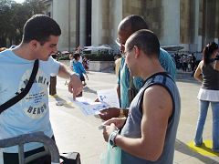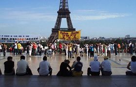 【明慧网二零零六年九月十二日】二零零六年九月十日星期日下午,法国法轮功学员在巴黎埃菲尔铁塔前的人权广场上向行人揭露中共对法轮功学员的残酷迫害,包括酷刑、非法劳教、判刑、活体摘取法轮功学员器官等各种非人行径。活动现场还用图片展板、功法表演等介绍法轮功及其在全世界的洪传和给世界人民带来的美好。法轮功学员的祥和善良与中共对法轮功的残酷迫害形成了鲜明对比,了解真相的人们纷纷伸出正义之手,签名声援法轮功学员,呼吁国际社会采取行动制止这场迫害。