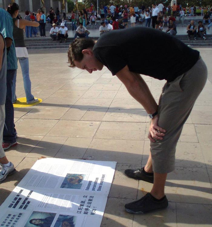 世界杯中法足球热身赛 法轮功学员揭露中共暴行(图)