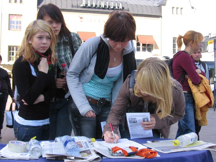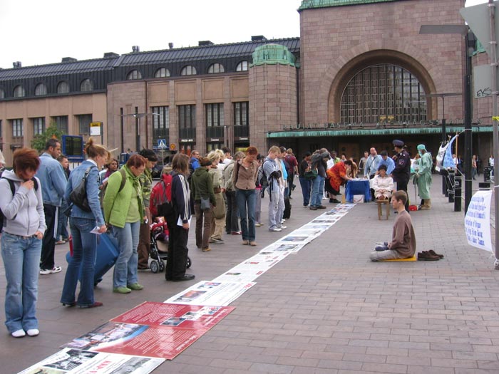 ![]() 亚欧峰会期间,法轮功学员在赫尔辛基火车站旁揭露中共暴行 |