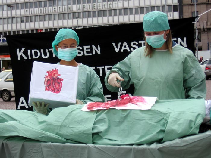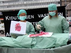 ![]() 模拟演示,揭露中共活摘法轮功学员器官的暴行 |