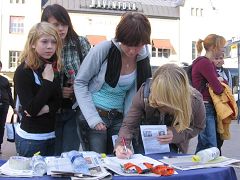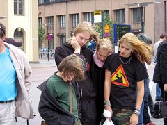 八日上午近十一点,刚刚结束了在中领馆抗议活动的法轮功学员来到火车站着手布置展板之时,芬兰国会议员、绿党主席赫塔拉来到现场,热情的与学员们交谈,谈她看到法轮功学员的平和努力,支持学员们的反迫害行动等。学员们也真诚的感谢她的支持。