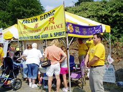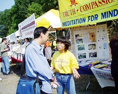 ![]() 法轮功学员的摊位吸引了很多人来了解真相 |