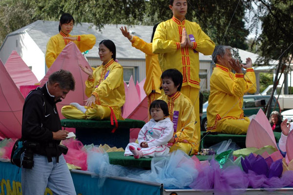 法轮功学员展现出来的热情、理性、祥和,受到比市人们的热烈欢迎,人们不时的竖起大拇指夸奖、欢呼,或报以热烈的掌声。学员的花车荣获游行比赛第二名。