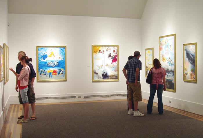 画展引来有缘人。有一个美国学生说,“我刚从中国回来,在北京两个星期,只有一天可看到太阳,其它时候都阴沉沉的。”“去北京前我妈妈告诫我不要跟法轮功有关系,不然会有(警察找)麻烦的。我反而对法轮功有了兴趣,我上网自学了法轮功,现在自己在炼。”从网上得到画展的消息后,他马上赶来了,并表示要参加集体学法、炼功。