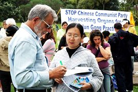 活动中,在呼吁制止中共活摘中国法轮功学员器官的请愿信上签名的市民前所未有的多,许多人阅读了手上的传单或观看了展板后就立即走上前来签名,甚至不需要更多的信息咨询。他们主动走向学员们,问道:“我怎样才能帮助你们?”