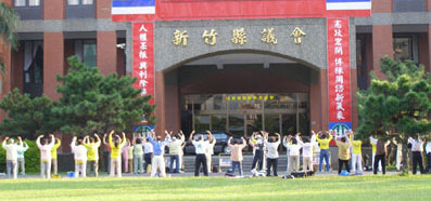 ![]() 法轮功学员在新竹县议会外炼功,希望让更多善良的人明白法轮功学员在中国大陆遭到惨绝人寰的迫害 |