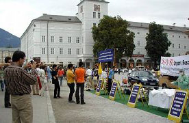 二零零六年九月三日,奥地利法轮功学员在萨尔斯堡举行活动,揭露中共残酷迫害法轮功的暴行。