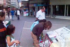 ![]() 瑞士法轮功学员在德法双语区Biel举办洪法讲真相活动 |