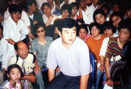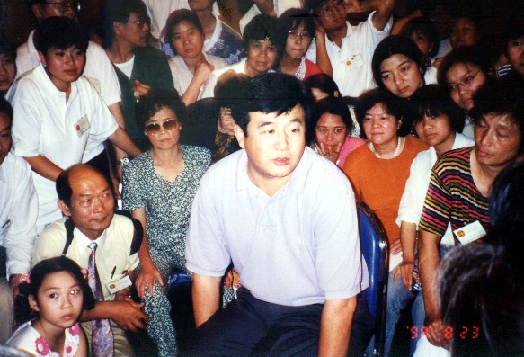 八月二十二日,午餐后,师父坐在学员中,听学员谈修炼心得体会。