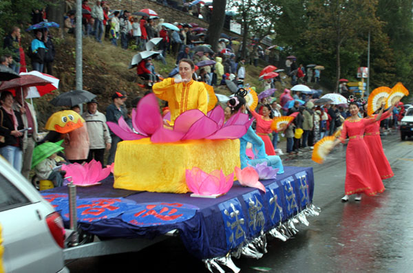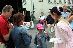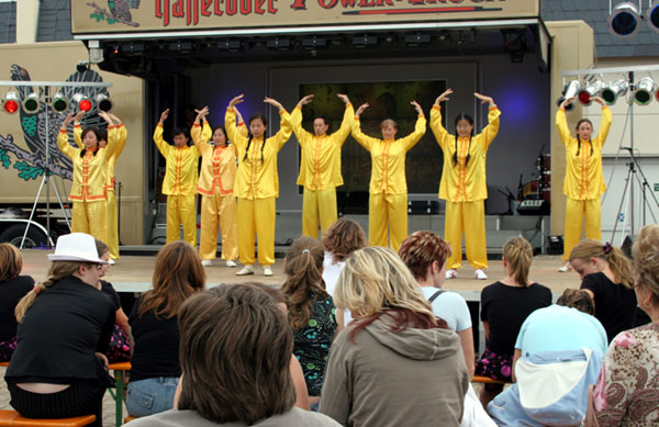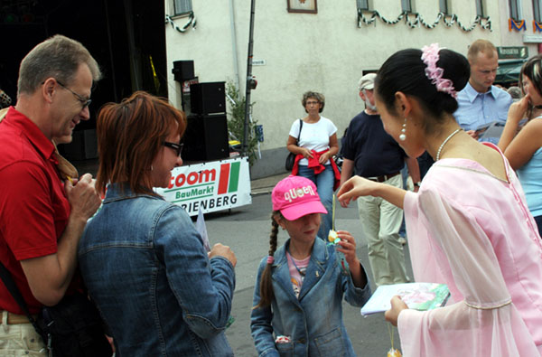 【明慧网二零零六年九月七日】德国萨克森州(Sachsen)第十五届州庆于二零零六年九月一日至三日在著名山城玛林博格(Marienberg)举行。应州庆组委会的邀请,法轮功学员表演的具有中国传统风格的舞蹈和花车游行,让德国萨克森人领略到了中国传统文化的内涵和魅力。据估计有三十万人参加了庆祝活动。