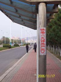 ![]() 法轮功小弟子也一起发简介书签给过往民众 |