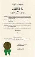 二零零六年十一月二十日,南卡罗来纳州康威市市长褒奖法轮大法,宣布十二月为法轮大法月。
