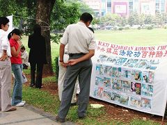 【明慧网二零零七年一月二十日】二零零七年一月十八日,印尼雅加达法轮功学员再次来到中使馆前,抗议中共对法轮功的残酷