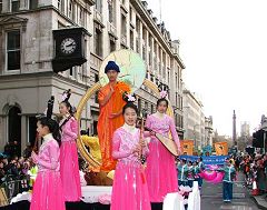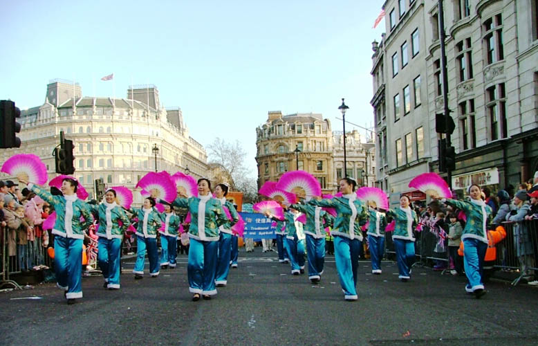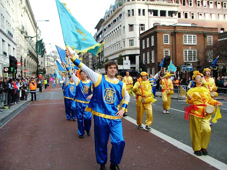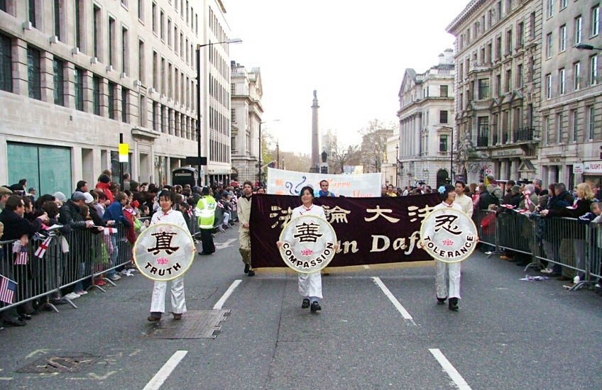 【明慧网二零零七年一月三日】第二十一届伦敦新年大游行于二零零七年一月一日如期举行,英国法轮功学员代表队再次应邀参加了这盛大的新年庆典活动。游行于中午十二点从Parliament Square开始,途经Whitehall, Trafalgar Square,Regent Street,Piccadilly Circus,最后在Berkeley Street结束。有来自二十多个国家和地区的一万多名表演者参加了这次盛会,五十多万观众云集伦敦观看了游行表演。