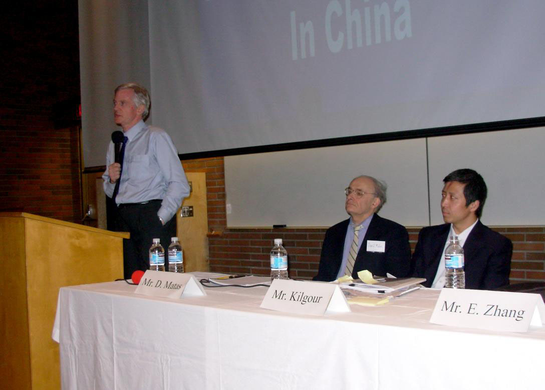 目前就读于卡尔加里大学的博士研究生温斯顿•刘,以自己的切身经历揭露了中共对法轮功的残酷迫害。在二零零五年抵达加拿大之前,因为坚持自己的信仰,他曾经多次被中共警察绑架,被迫休学。身体折磨以及心理上的折磨曾经带给他无休止的痛苦,这种痛苦延续至今。他说,被中共非法关押和绑架的法轮功学员根本没有生命的保障。他特别指出,在被非法关押在监狱期间,法轮功学员都要被迫做详细的身体检查,包括血型、身体各个器官的状况,等等。在活摘法轮功学员器官的事件被曝光后,现在他明白,被非法关押、绑架的法轮功学员都被视作活体器官库。他还回忆了一些在看守所曾经接触过的法轮功学员,他们到北京上访,仅仅想反映他们修炼法轮功后身心受益的体会,却被警察绑架、殴打,他们坚决不肯说出自己的姓名及住址(不愿意让自己的亲人、朋友受到中共迫害政策的株连),后来有些学员失踪了,据说被送到了专门建立的集中营,那里现在是中共活体器官移植的器官库。刘的妻子现在仍然在北京的监狱被非法关押,自从到加拿大后,刘有很长时间无法与她直接联系。刘的亲身经历使现场的许多人动容,很多人在探讨会结束后专门向他致意,祝福他尽快家庭团聚。