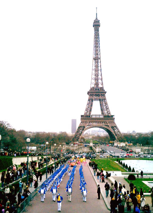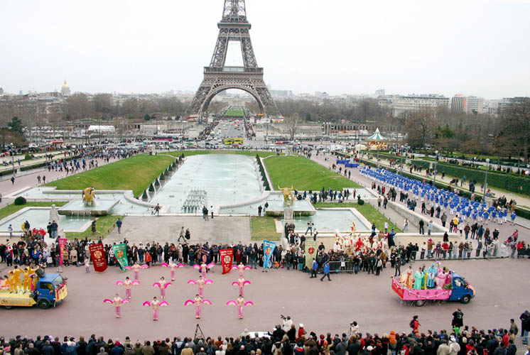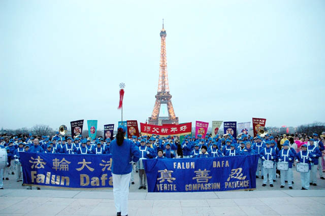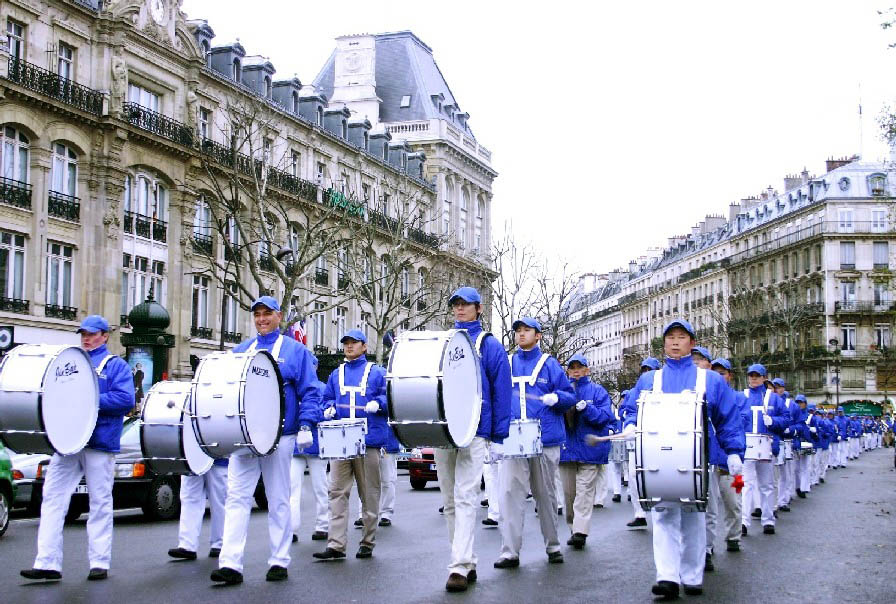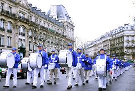 【明慧网二零零七年一月六日】二零零六年的最后一天和二零零七年的第一天,由一百六十名法轮功学员组成的欧洲「天国乐团」首次在法国亮相,并在四场游行活动中展示出法轮大法的美好和法轮功修炼者的风采。法国法轮大法协会在巴黎市中心、华人区举行了两场游行活动,并应邀参加了在巴黎市、尚帝伊市游行节(The Paris Parade Festival)上的另外两场游行和表演活动。「天国乐团」壮观的队伍和精彩的演奏令人们耳目一新,赢得观众的喝彩。