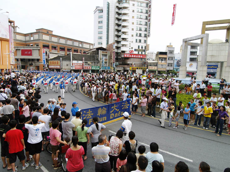 众多踩街队伍中,法轮功的天国乐团很受欢迎,二百五十人的浩大声势、振奋人心的演奏,是非常亮丽的一支队伍。天国乐团经过时,身旁的民众说:「哇,好隆重喔。」也有民众表示:「从未见过如此浩大的表演团体踩街,太震撼了」。许多小朋友见到法轮功学员装扮的仙女时,直呼「好漂亮、好漂亮。」争相要挂着洪法书签的莲花和糖果。观众竖起大拇指,频频叫好,更有观众马上打电话叫家人、朋友到游行现场来观看,兴奋之情溢于言表。