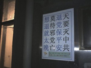 中共召开十七大前夕,万名访民联名上书,这些访民多年上访无结果,他们已经认清共产党的邪恶,声明退党的人越来越多。十月九日,一位在北京参与联署的访民,向退党中心发来一份四十九人的三退名单。
