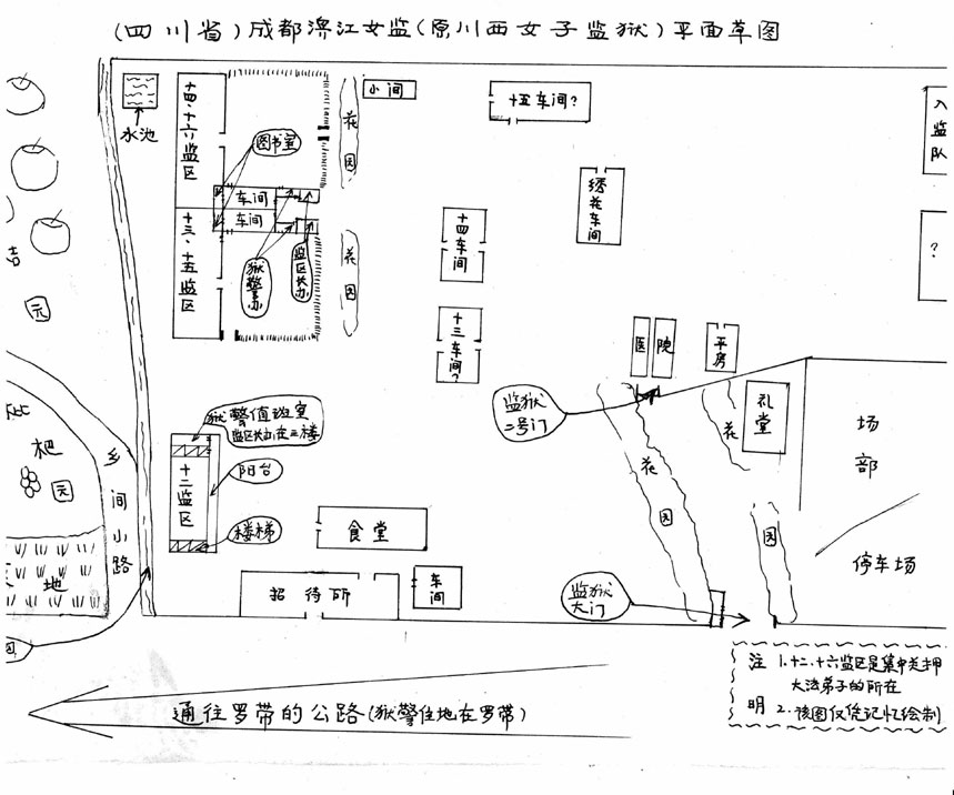 监狱概况:位于成都市龙泉驿文安乡大包村,村口有通往罗带的公共汽车,监狱警察住家在罗带。监狱共有五个监区,有三栋楼,每栋楼约有六层,十三、十五 监区住一栋楼,十四、十六监区住一栋楼,这两栋楼是一体的,但各进各的大门。十二监区是二零零三年后新建的一栋楼,离另两个监区较远,每一层楼有八个监室,每个监室关押十二人,每个监室只有一个大法弟子。