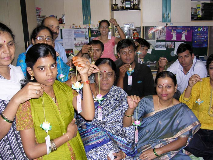 ![]() 印度学员手拿莲花大家一起合影 |