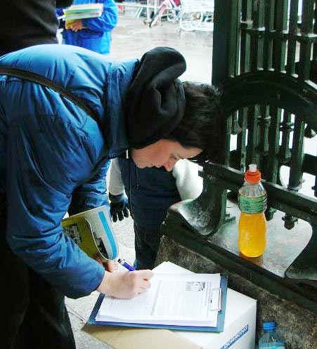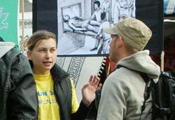 一位德国女游客说:我是前一阵在斯洛伐克的人权圣火活动中知道法轮功的,也知道了中共残酷迫害法轮功学员的暴行。