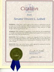 褒奖令参议员文森特•雷贝尔鉴于,一个伟大之州之所以伟大,是因为该州的居民和团体为他们的社区做出了杰出的奉献,他们或者在其专业领域或其它方面取得了独一无二的成就,或者是终生做一名好公民;并且,鉴于,当这些人和团体的高尚的目标和成就引起我们注意的时候,他们应得到全体大纽约州公民的祝贺和认可。
