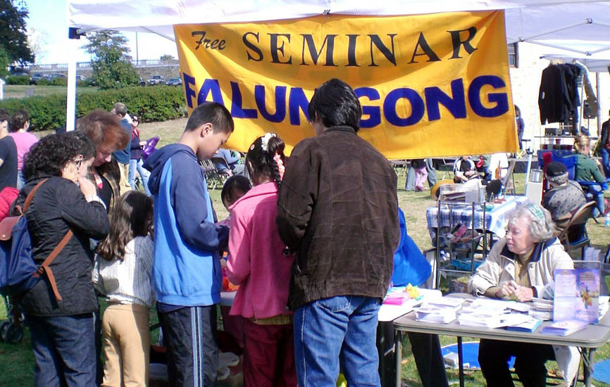 一对俄籍父子来到法轮功学员的摊位。他们对《九评共产党》光盘极感兴趣,频频询问光盘的内容。学员从法轮功功法谈到中共迫害法轮功、再进一步介绍揭露中共罪恶的《九评共产党》。这位父亲很惊讶,表示他只知道俄国共产党对俄国人的迫害,却不知道中共对善良的中国人的迫害有过之而无不及。他要把《九评》光盘带回家,和亲朋好友一起观看。