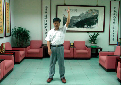 ![]() 修炼让教育人员易于领略管教的艺术。图为正在炼功的洪腾祥校长 |