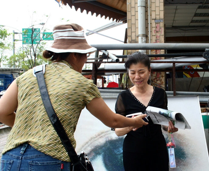 ![]() 民众接受九评共产党小册子 |