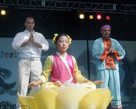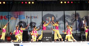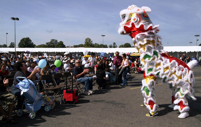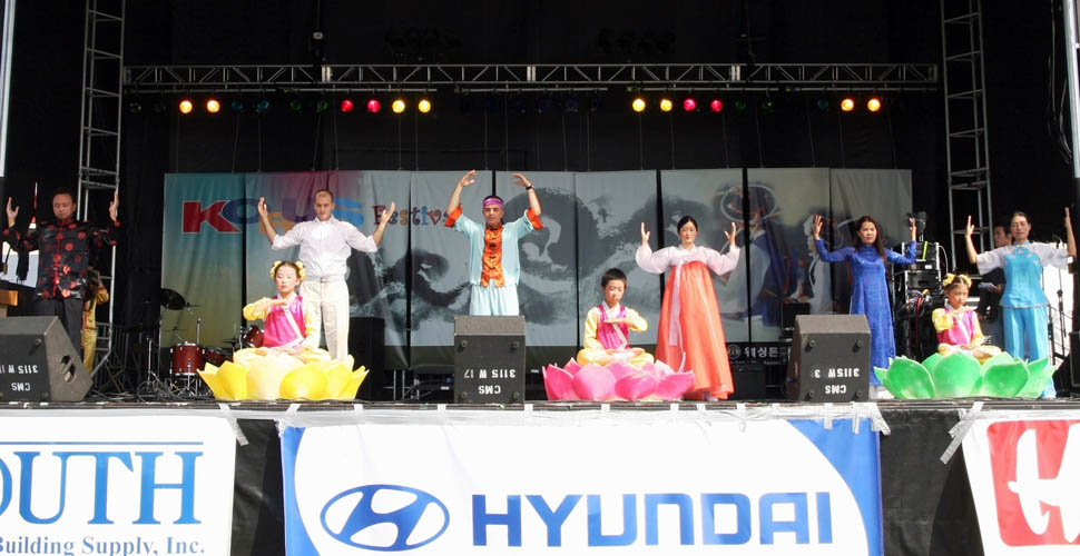受亚裔社区服务中心邀请,大华府地区部份韩裔、越南裔、西人和华裔法轮功学员以及明慧学校的大法小弟子在舞台上除了演示法轮功五套功法之外,还表演了舞龙、舞狮及太平鼓舞,把美好祥和带给社区的各族裔民众。