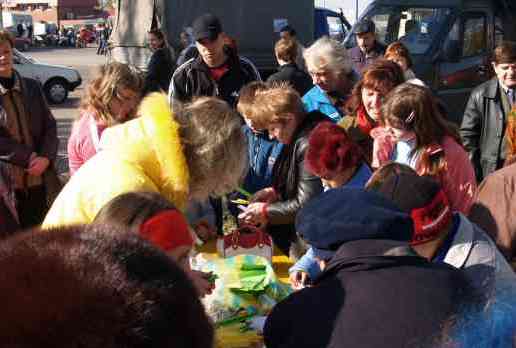 在活动期间有很多小孩和青年人对大法表示出极大的兴趣,他们主动的向学员了解法轮大法在乌克兰的洪传情况。