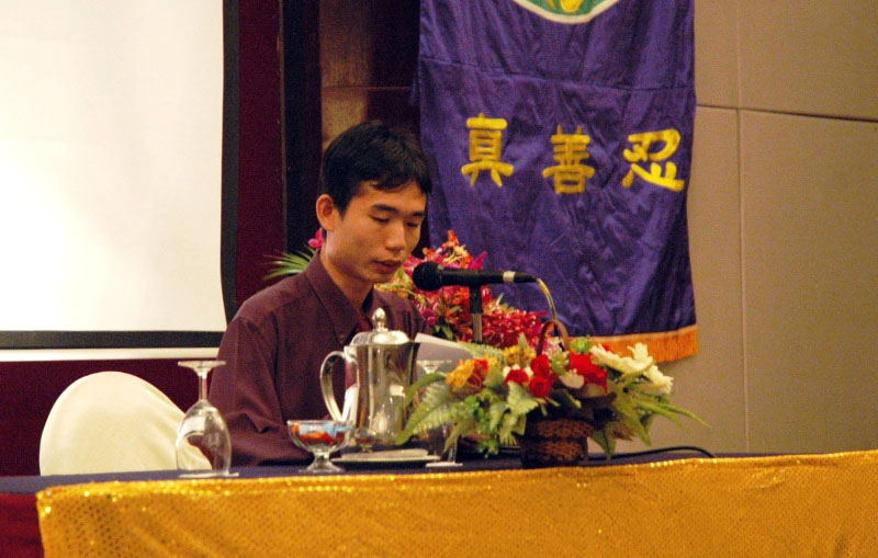 来自柔佛州的杨先生是一九九八年得法的学员。他坦然的与大家分享了自己在这九年中在得法修炼过程中没严肃对待修炼而走了许多弯路,希望讲出来让同修有个借鉴。他在一九九九年与一位同修发生矛盾。由于心放不下,脱离了大法三年。直到二零零二年,一位同修给他一些大法真相资料,他才恍然大悟这三年里竟然发生了这么多的事,而且自己完全没有理会。当时,回家看大法的书,感觉师父还没放弃他这个弟子。就这样他又渐渐的回到大法中修炼,也和那位因矛盾久没来往的同修和好了。妻子也在那时得法。