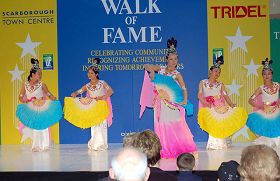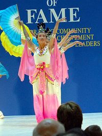 由法轮功学员组成的莲花艺术团作为华裔民族的代表为这次活动献上了狮子麒麟舞、中国古典歌舞、古筝、腰鼓,同时向观众演示了来自中国的博大精深的修炼功法──法轮功。