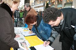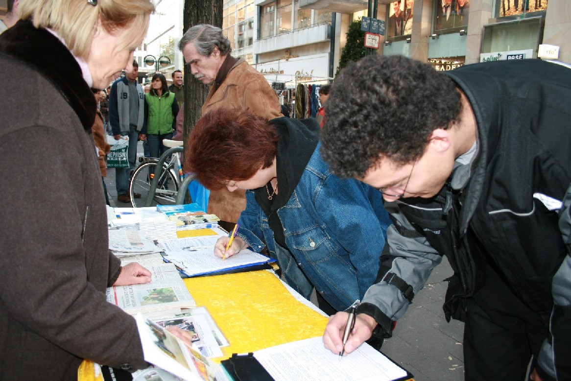 来自附近城市亚深的一对夫妇Stanneveld在观看了天国乐团的表演和法轮功展台旁的揭露中共活体摘取器官模拟展后,马上签名反迫害。他们表示,发生这样的事情让他们很难过,因为这太不人道了,尽管他们以前没有听说过法轮功,但他们毫不犹豫的签了名。另一位签名的妇女Birgit Heido(音)相信活摘器官的事情会在中国发生,因为在中共统治下的中国这样一个凡事都不透明的国度中,某些地方人们无法去审查,比如在监狱等地发生的事情。她说她会告诉其他的人关于活摘器官的事情,只有这样才能让更多的人了解到底发生了什么样的事情。