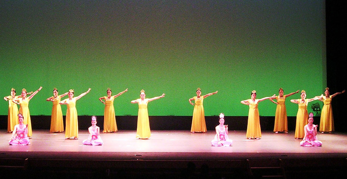 演出之前,学员首先向观众介绍了她们是因为修炼法轮功而走到一起来的,法轮功是一种使人身心都得到健康的功法,按照“真善忍”的标准提高心性,而她们的舞蹈表现的正是修炼者对“真善忍”的领悟。