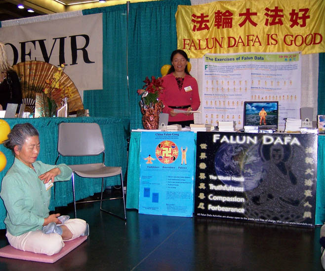![]() 法轮功学员的展位 |