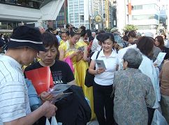 ![]() 市民们欣喜的阅读法轮功真相资料 |