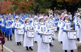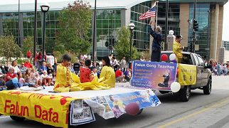 二零零七年十月八日,在美国罗德岛州温莎基市 举行第二十九届秋季庆祝哥伦布日的大游行中,法轮大法的天国乐团、舞龙队和仙女舞蹈队首次被主办单位邀请参加,并作为游行最精彩的方队压阵亮相。