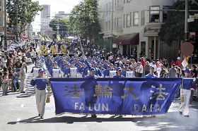 旧金山哥伦布节庆游行 法轮功学员再现风采(图)