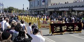虽然法轮功在中国已经被迫害、抹黑了八年,但旧金山哥伦布大游行中法轮功团体所展现的精神面貌,让这些来自国内的同胞禁不住拿出相机留下这个在大陆暂时还不可能看到的壮观场面。